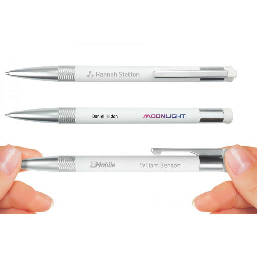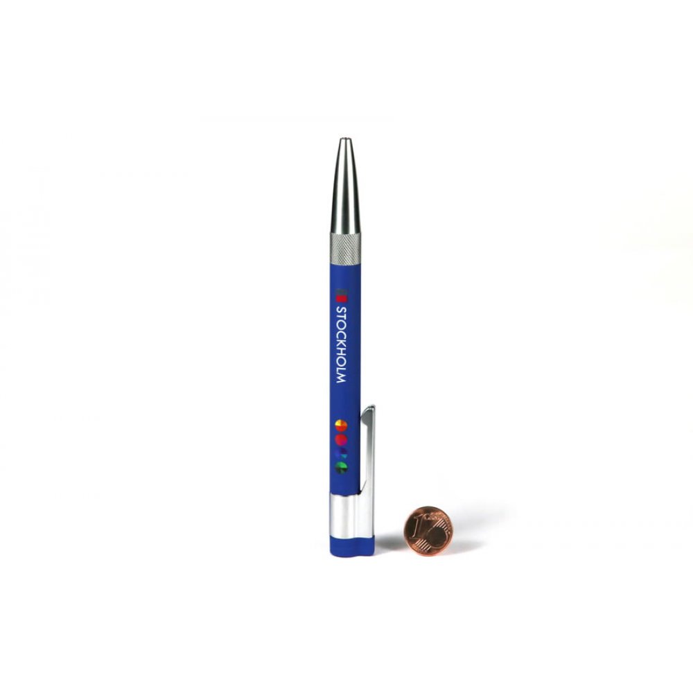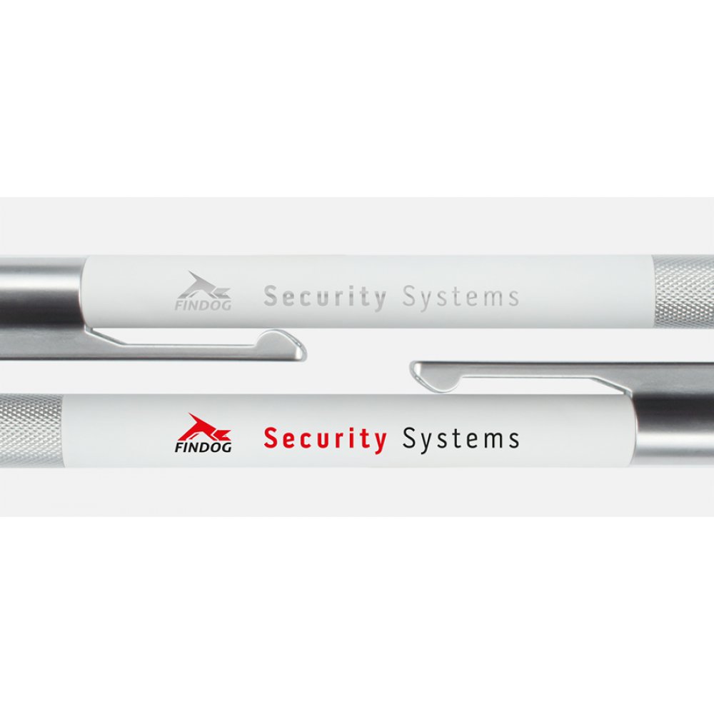 Das Metallgehäuse mit gummierter Oberfläche sorgt für eine perfekte Haptik. Ein preisgekrönter und sehr hochwertiger Werbeartikel.